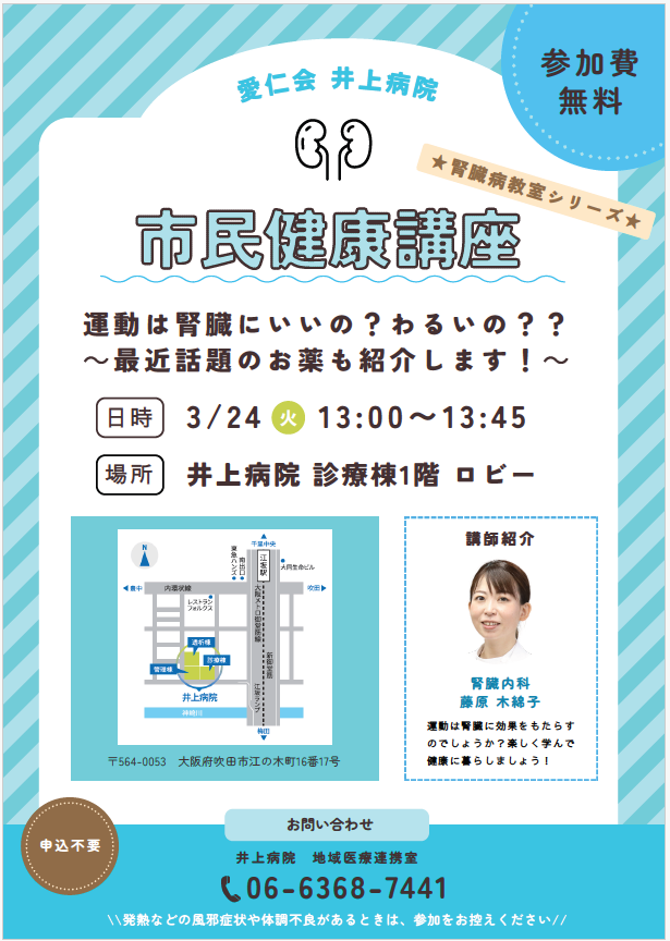 - 2024年5月28日「腎臓病とお薬の話」講師:腎臓内科 一居充・薬剤科 足立哲也